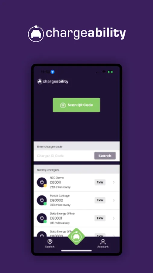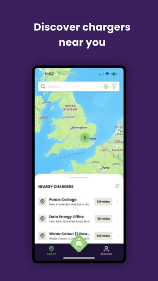 - Identify nearby chargers via charger list or a map view