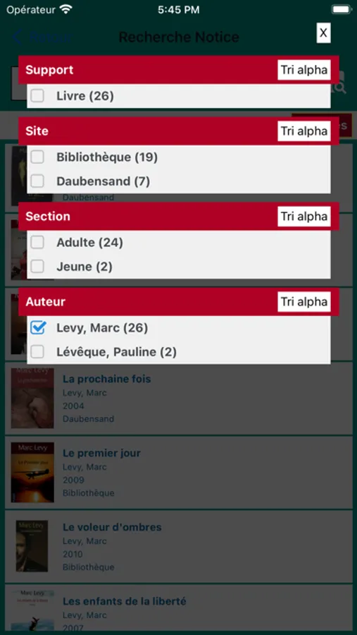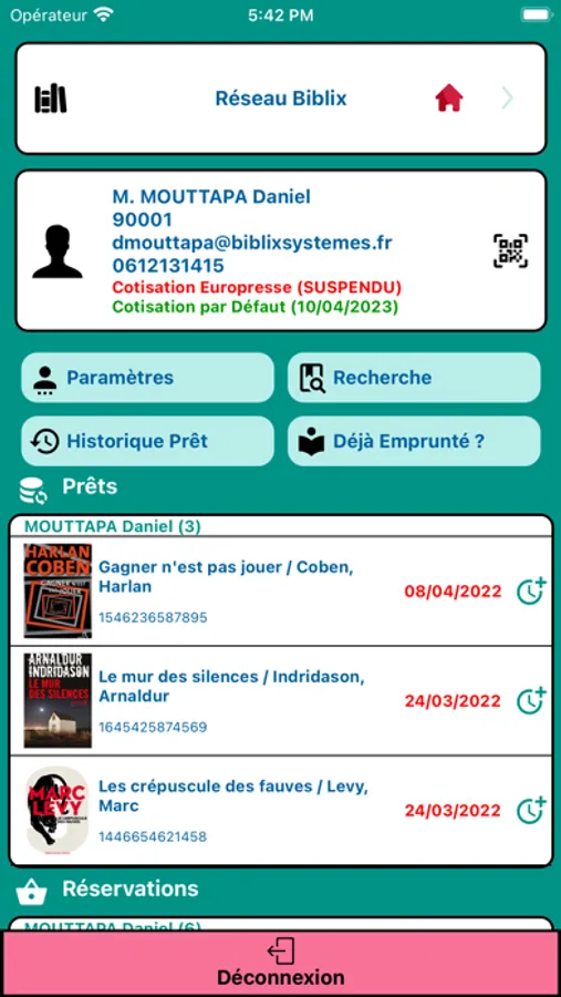 Cette application permet à un adhérent d'une bibliothèque équipée du catalogue en ligne "opac-x" de Biblix Systèmes d'effectuer les opérations suivantes :