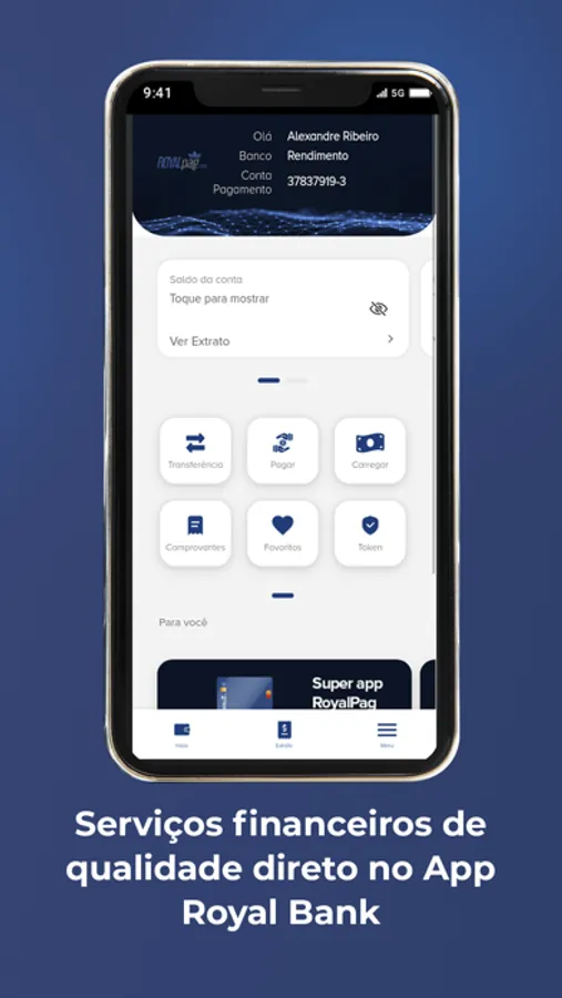 Já imaginou ter uma conta digital que tem a solução completa para suas transações na palma da sua mão? Com o RoyalPag, você pode! Aqui, você baixa o App e tem uma plataforma completa, com vários serviços incríveis esperando por você.