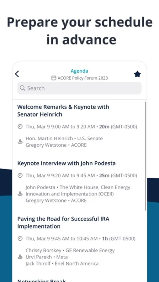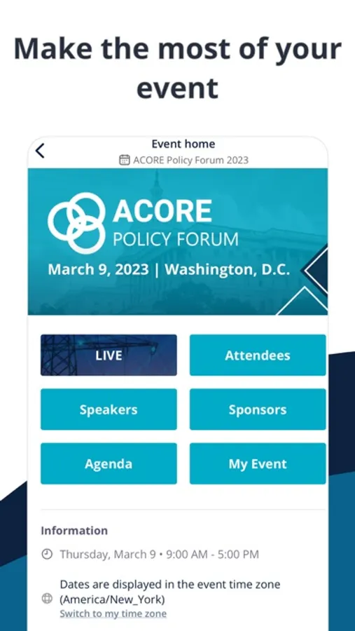 The official mobile app for ACORE Events enables attendees to get the most out of their event experience with helpful features.