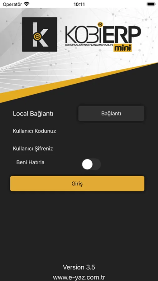 KobiERP kullanıcılarının kendi verilerine bağlanabilmesi için sunucu web servisi kurulmalıdır. Bu işlemler için E-Yaz A.Ş. destek servisi aranmalıdır.