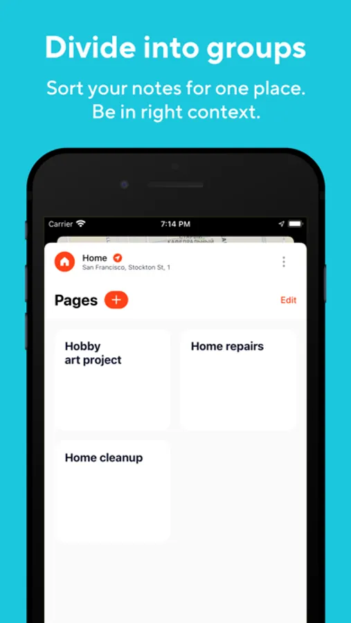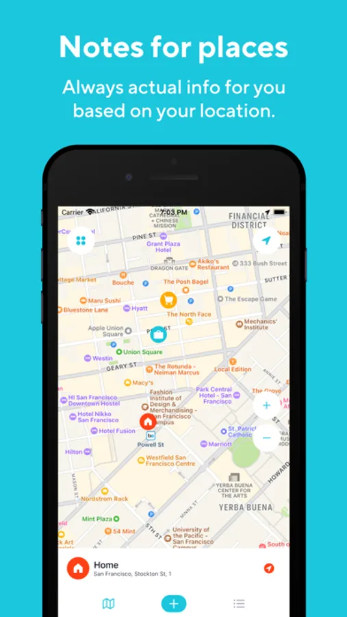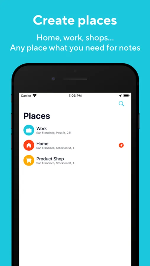 Loconote - geolocation based notes. Create places where you are frequently in and take useful notes. Create to-do lists and text notes divide your notes by group within each places for more convenience. It can be repair, cleaning, leisure for your home notes or group notes by work projects for work place or places e.t.c.