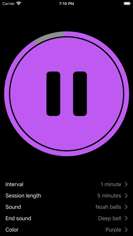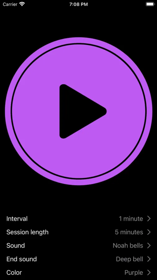You can select from a palette of sounds, configure the interval and session length, and even choose the color of the interface.