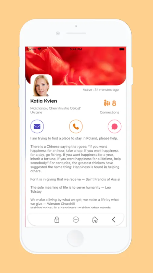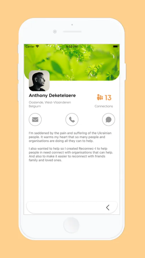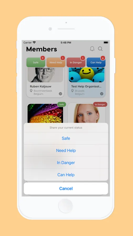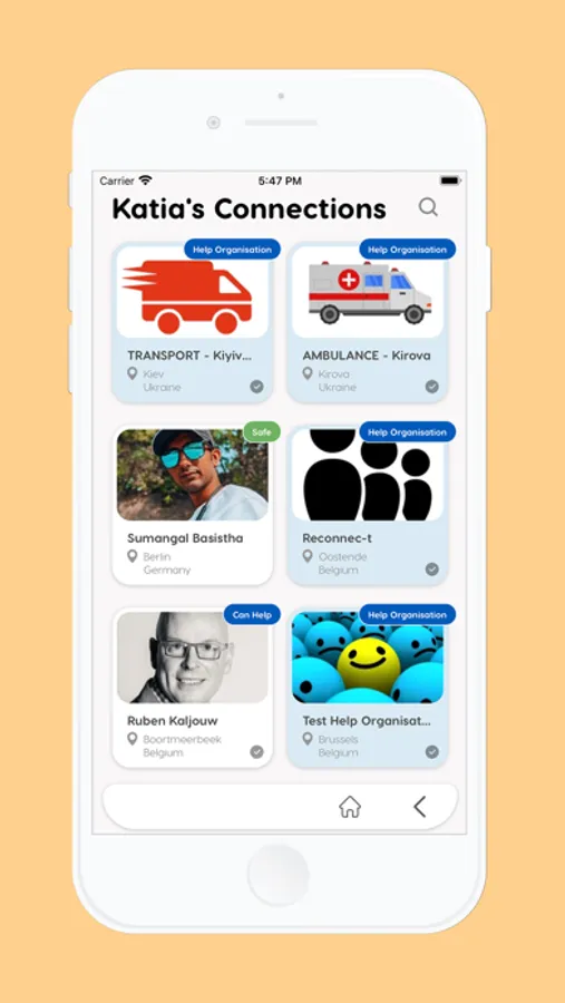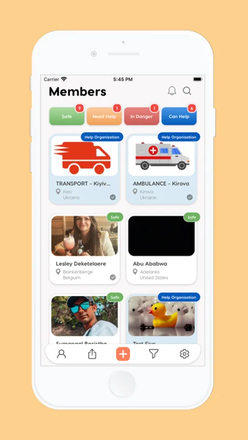 Once you signed up you can immediately login to the platform and start making connections. Your default status is set to ‘Safe’ when needed you can change to: ‘Need Help’, ‘In Danger’ or ‘Can Help’. This way you know instantly when someone is in need of your support and when they are safe again.