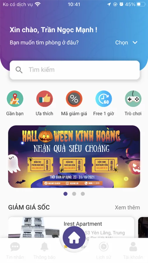 - Nhanh chóng tìm kiếm phòng nghỉ xung quanh bạn