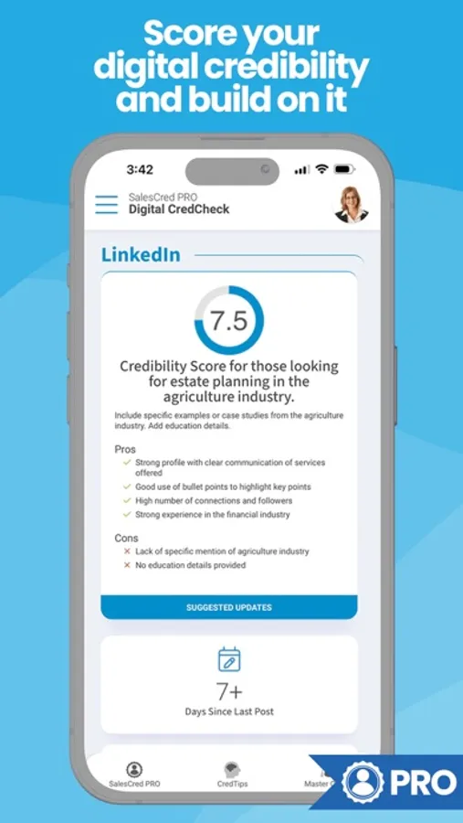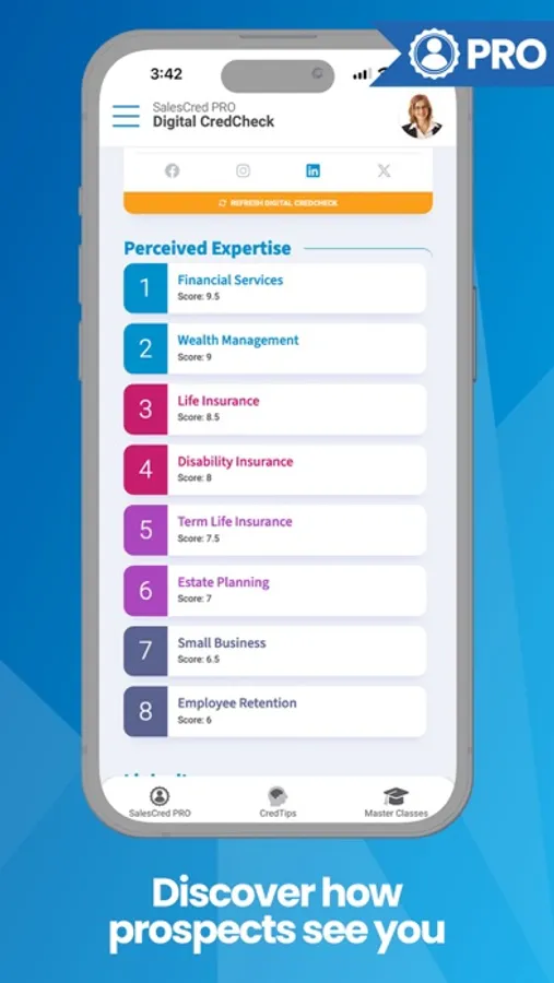 Digital Credibility Scoring: Ever wondered how prospects perceive you when they Google your name? SalesCred PRO doesn’t leave it to guesswork. It meticulously measures your digital credibility, laying out what your prospects find and how it impacts their decision.