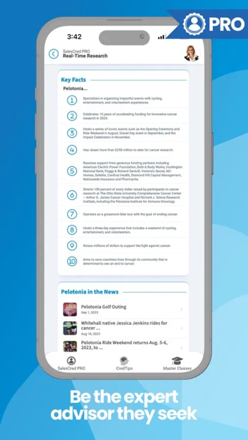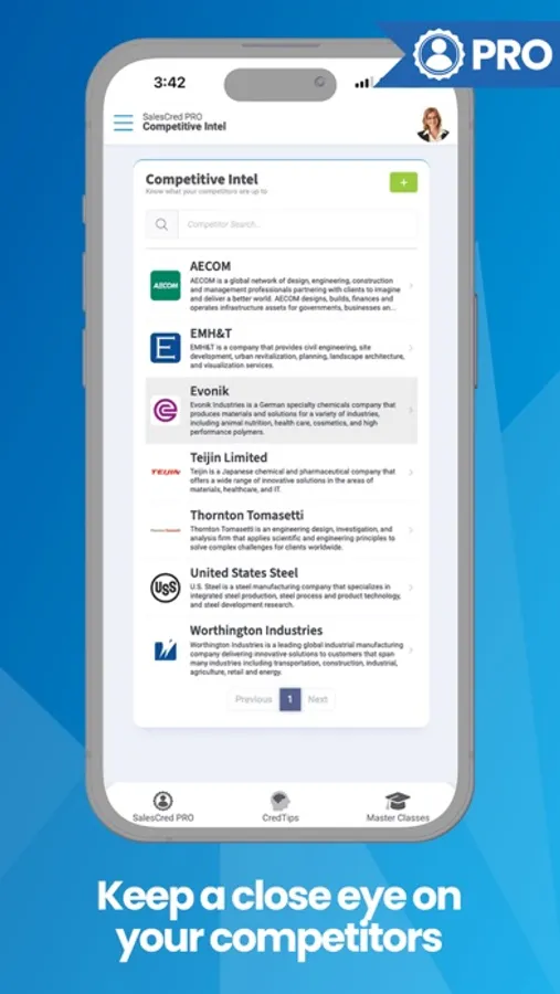 Real-time Pre-sales Research: Be prepared to provide value on every call. Forget the tedious hours spent researching prospects, clients, or competitors. With SalesCred PRO's real-time business intelligence, get a crisp analysis at your fingertips, prepped and ready for your next meeting.