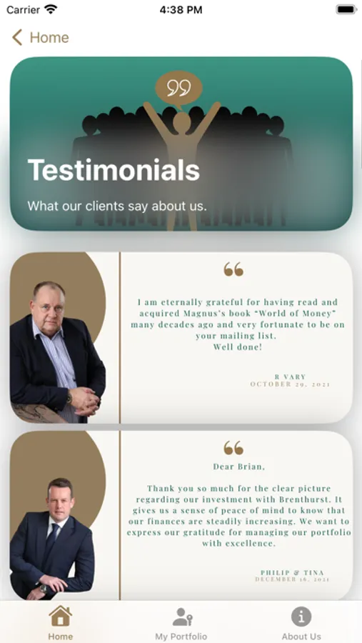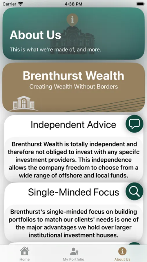 This app grants current and prospective clientele an insight into the company and provides them an immersive and centralised location for their financial wealth planning needs.
