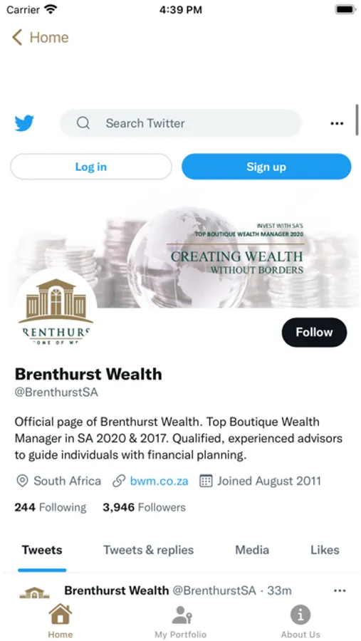 The Brenthurst app is an innovative way for clientele to gain access to their Wealth Portfolios, Information about the business and stay updated on new financial trends.