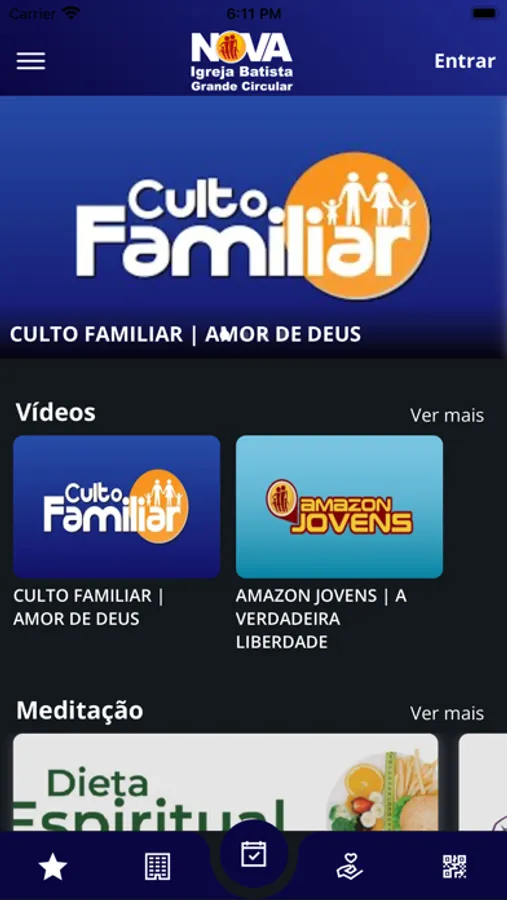 * Conteúdos (Áudio/Vídeo): Permite visualizar e ouvir os conteúdos da Igreja disponíveis no App;