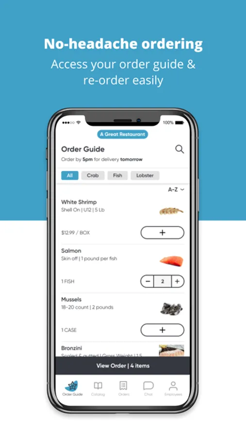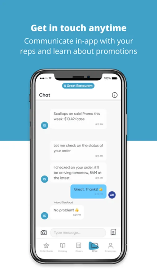 - Get in touch anytime: communicate directly with your Inland Seafood rep in the app