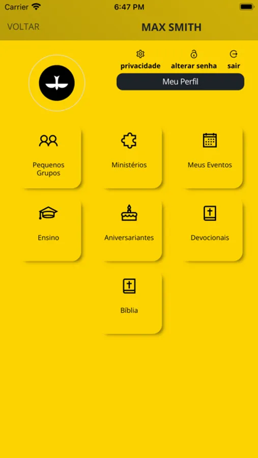 * No item Meu Perfil é possível atualizar seus dados cadastrais na Igreja;
