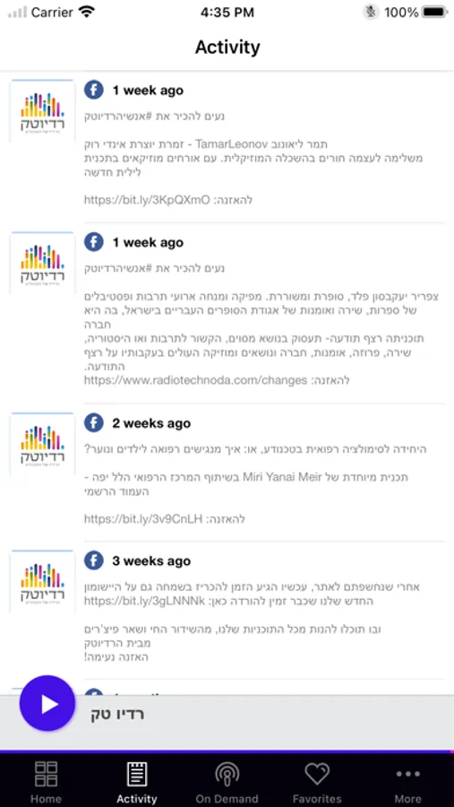 Community educational radio, a magnet for teenagers from Hadera and the surrounding area and Olga Hill in particular who dream of making a radio, and for people in the community where the radio bacterium nests.