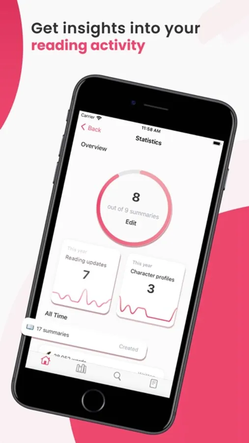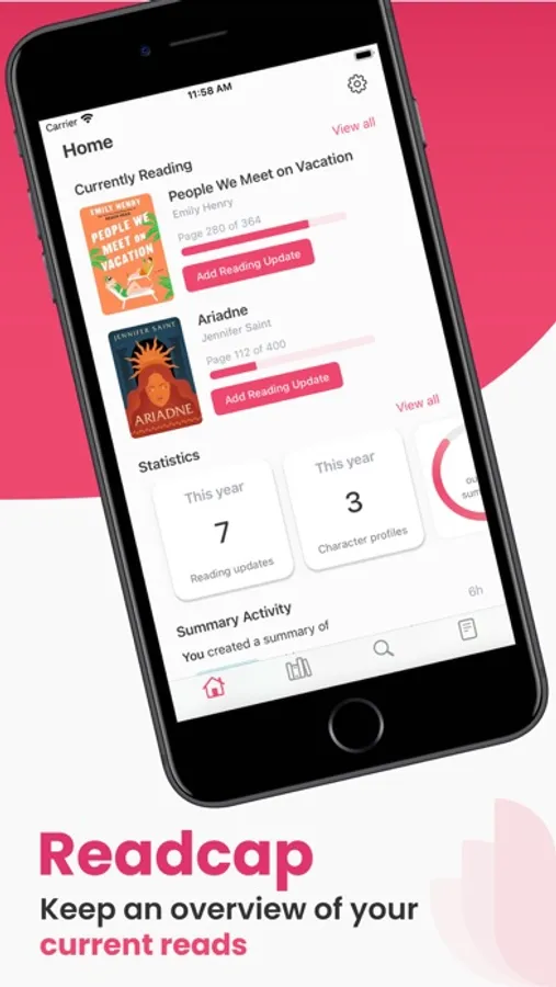 With Readcap, you have the ability to create book summaries, visualize your reading statistics, and keep an overview of the various details of a book, all in one app. You can easily access your current reads to view your summary activity and even revisit these through the dedicated summary tab, both online and offline.