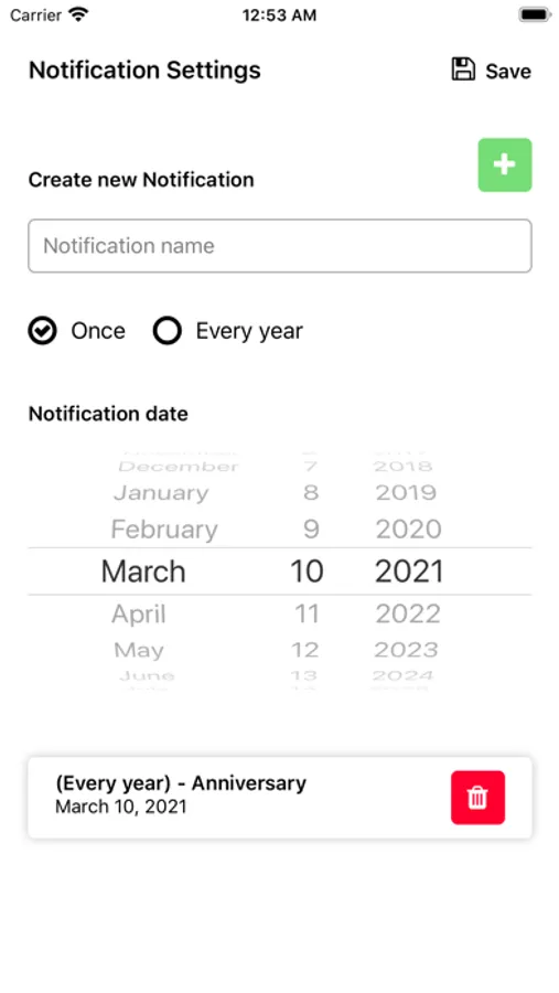 You can see and remember every anniversary of your relationship as a notification