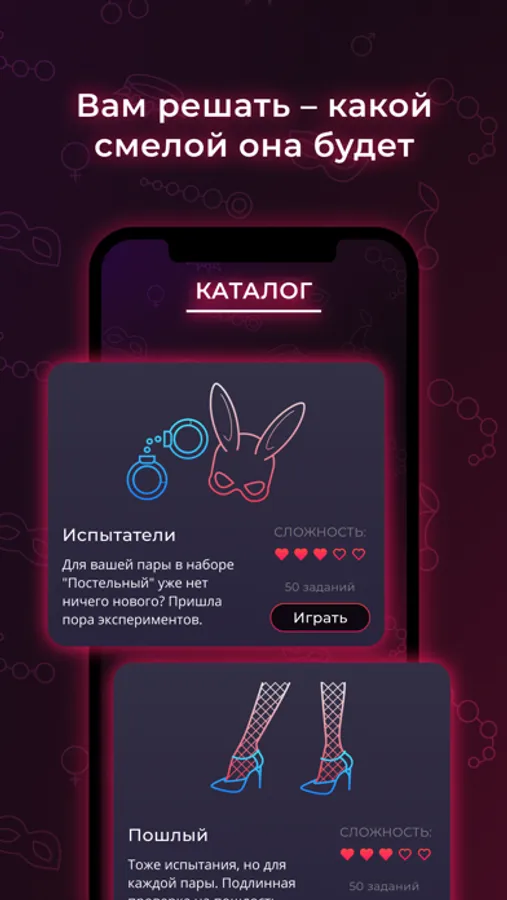 Тайные желания – игра для пар, которая поможет узнать ваши самые смелые фантазии, поделиться ими и претворить в жизнь. Играть следует именно парой, потому что в одиночку вы с такими фантазиями точно не справитесь.