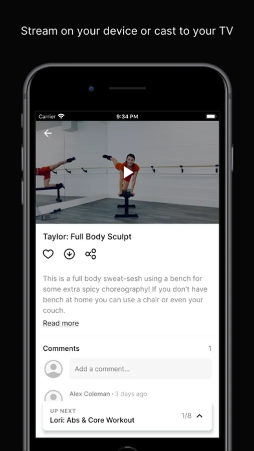 -Variety of styles including Barre, Sculpt, Pilates, Booty Building, Cardio Dance, Yoga, HIIT, Ballet, Strength Training.