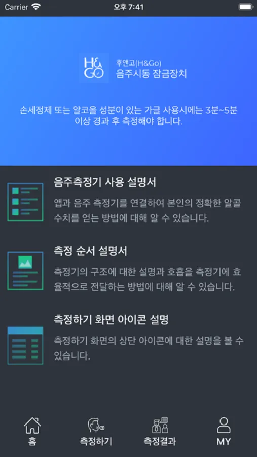 1. 음주측정기와 시동잠금장치를 제어하는 앱입니다.