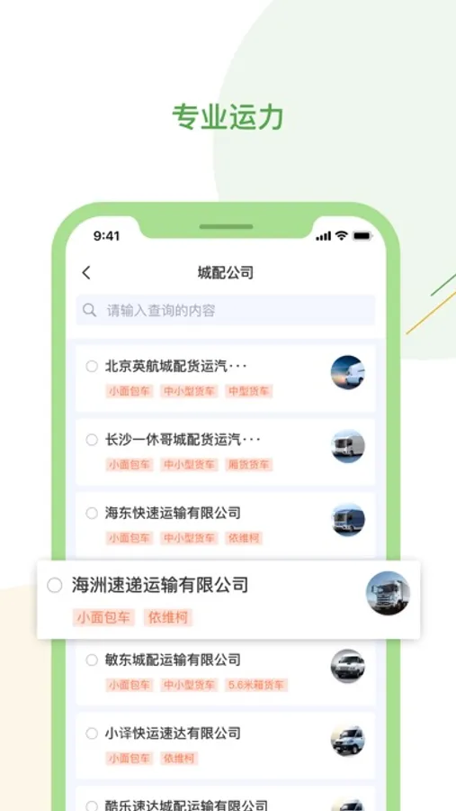 货主可自主选择运力方,支持匹配货主要求的会员司机抢单,也支持货主直接指派专业城配公司承接货物,支持货主指派意向司机、指派专业车队,货主及用户享有海量丰富的运力资源!