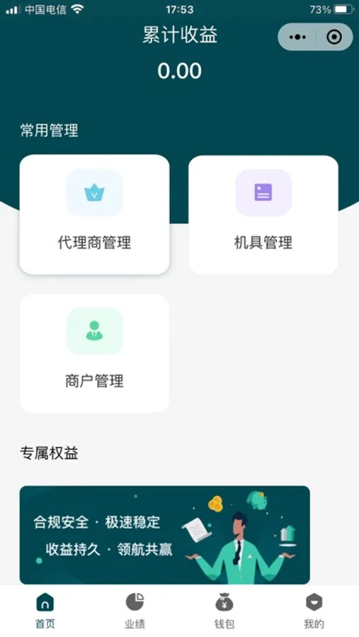 一款集交易查询、数据管理、收益分析为一体的综合管理平台,是一款便捷、高效可靠的服务商展业工具。