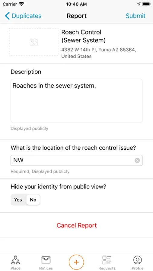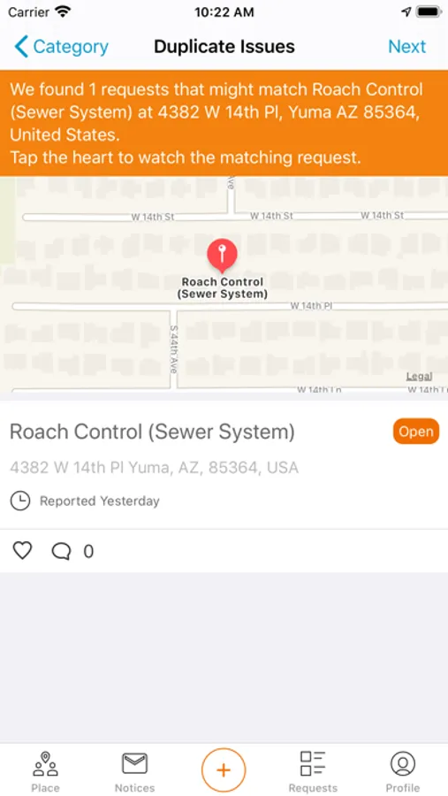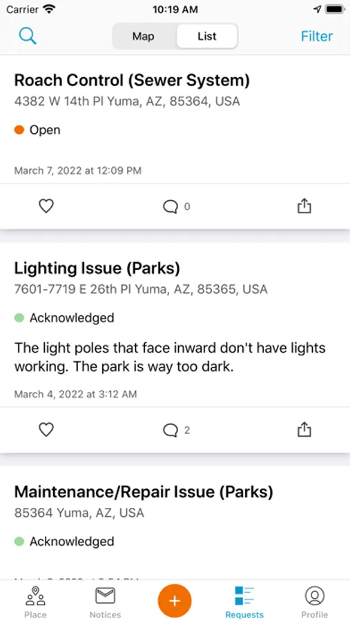 To submit a request, just open the app and drop a marker on the map where you noticed a concern, answer a few questions about the issue, and include a photo when possible. Through the app, users can track their issue from the time it’s reported until it’s resolved as well as communicate directly with City staff.