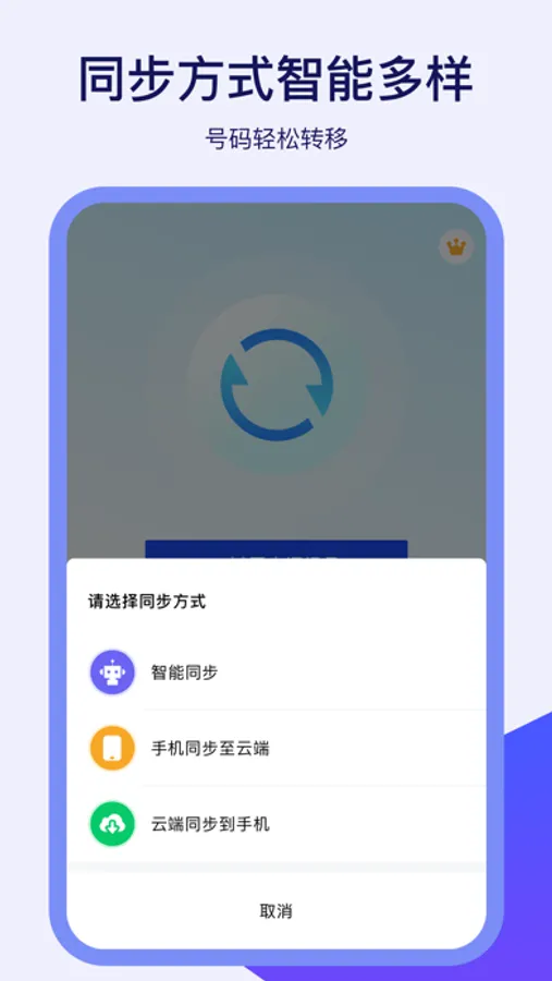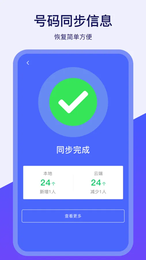 【智能同步】:一键同步通讯录,帮你搬运所有联系人信息。云端备份,本地导入,还原信息只需要点击按钮,即刻完成!
