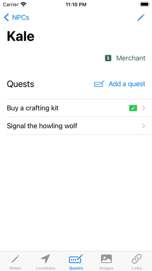 Shattered Ring is the easy-to-use iOS RPG game task tracking app you never knew you needed. Add notes to NPCs, and search not only on NPC, location, or quest name but the contents of your notes. Enter as little or as much information as you'd like. Create new NPCs with as little as a name, or add details about quests and locations when you create the NPC. You can always go back later and add existing locations or quests to an NPC you've created.