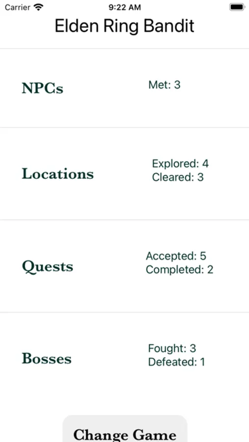 Stop flipping through massive notebooks, or losing your notes entirely, while trying to keep track of your role-playing game progress. Save and easily search for non-player characters, game world locations, quests, and bosses in your favorite RPGs. Track NPC locations and quests, filter on complete or incomplete quests and locations, and view at-a-glance stats for your games. Must-have companion for massive RPG video games like Elden Ring, or your favorite Dungeons and Dragons campaign.