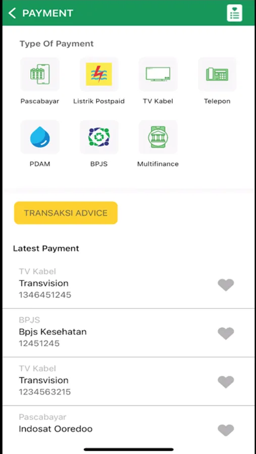 10. Bayar BPJS Kesehatan, PDAM (PDAM Palangka Raya, PDAM Kotawaringin Timur, PDAM Lamandau, PDAM Seruyan, PDAM Kotawaringin Barat) Indihome, Indovision, Transvision, kartu Halo, XL Pascabayar, dan Indosat Ooredoo.