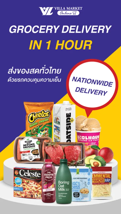Shop your favorite products from Villa Market online and have them delivered straight to your door. With our comprehensive online grocery shopping experience, you can enjoy nationwide delivery in Thailand from the comfort of your home.