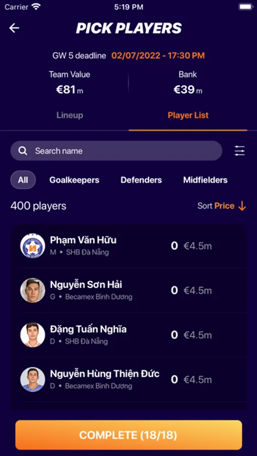 VFANTASY là ứng dụng fantasy dành cho cộng đồng người hâm mộ giải vô địch quốc gia Việt Nam.