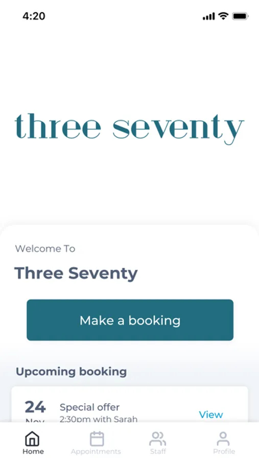 The Three Seventy app makes booking your appointments and managing your loyalty points even easier. You're just a few taps away from feeling good and looking great!