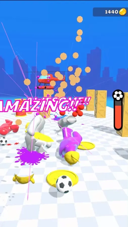 - By killing each blob you’ll gain points. And with level progress unlock cool kickable items.