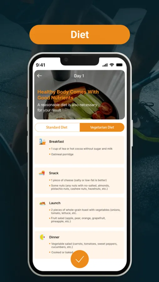 Nutritional Plans: Access tailored meal plans, including Regular and Vegetarian options, to complement your workouts.
