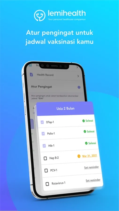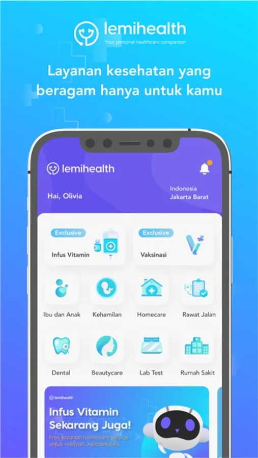 Pengguna dapat memesan layanan kesehatan dengan aplikasi Lemihealth dimana saja dan kapan saja tanpa harus mengantri dan mengisi dokumen. Dengan Aplikasi ini juga dapat menyimpan health records yang bisa diakses kapan pun dan dimana pun, juga mempermudah konsumen untuk berkonsultasi selanjutnya serta memperoleh layanan kesehatan di kemudian hari.