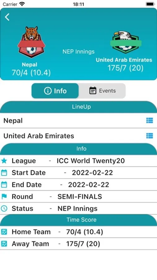 -View live scorecard of the match with detailed information.