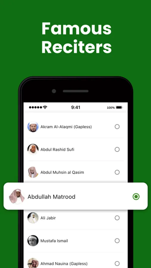 The application includes famous reciters from all over the world. You can listen to ayahs with recordings of well-known reciters such as Akram Al-Alaqmi, Abdul Rashid Sufi, Abdul Muhsin al Qasim, Abdullah Mahrood.