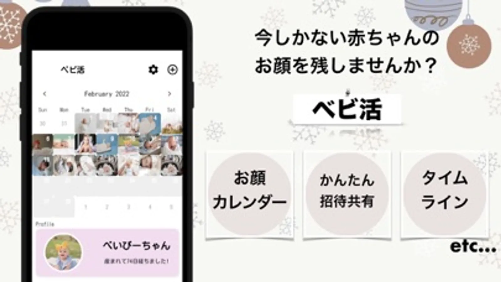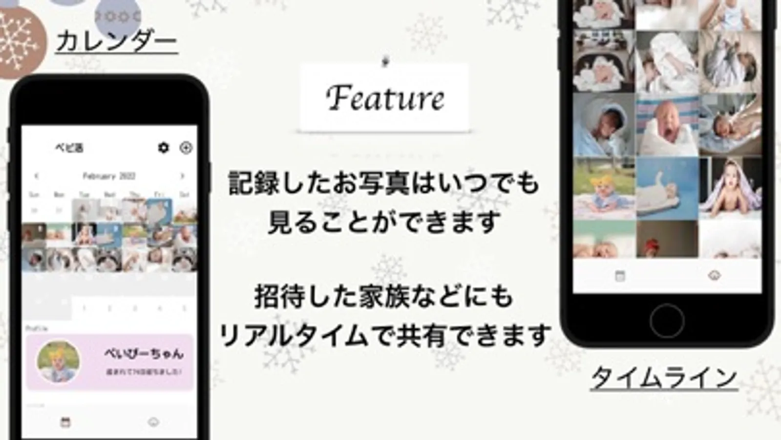 写真をカレンダーに載せ、1日1日の成長の過程を画像や動画から実感することができます。