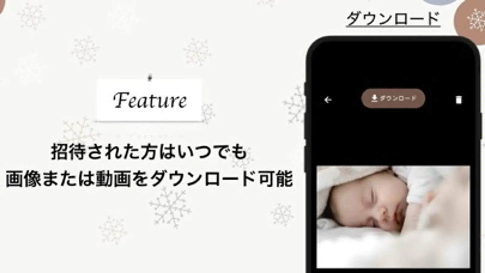 パパや両親などにリアルタイムでアップロードした画像や動画を共有することができます。