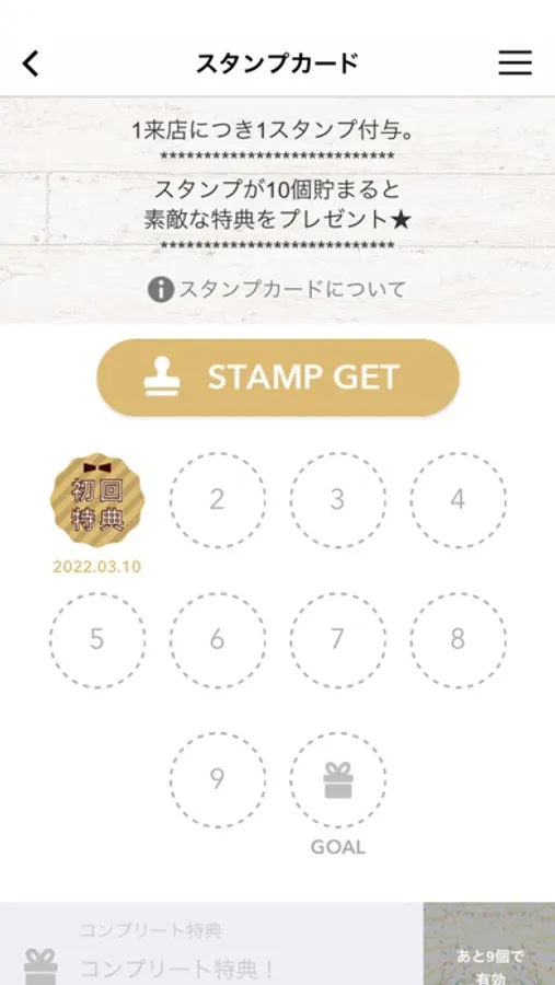 アプリ内にスタンプが貯められます。