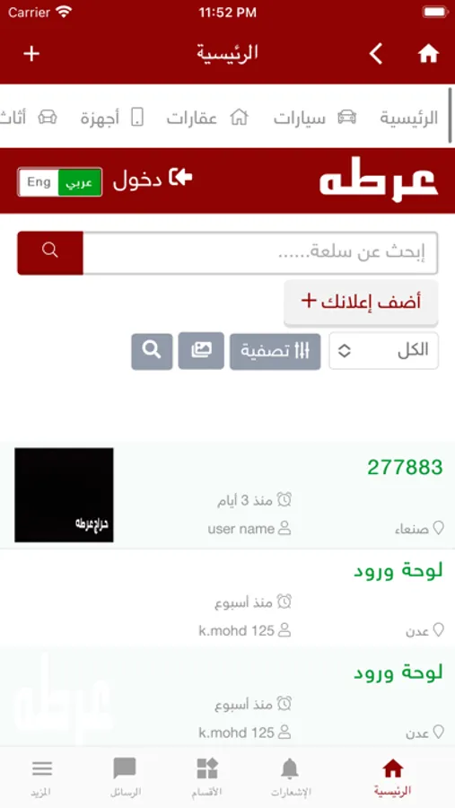 اقسام موقع حراج عرطة