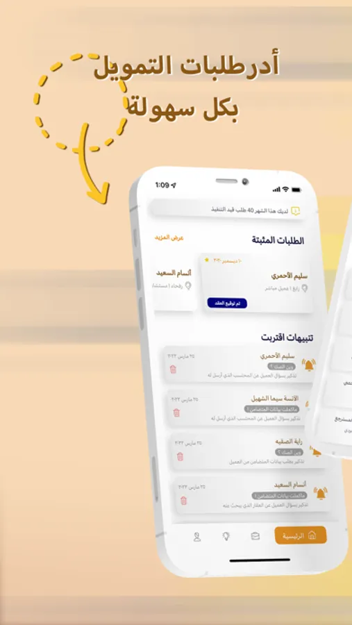 تطبيق دوسيه يخدم مناديب التمويل العقاري “البنوك وشركات التمويل”. تطبيق لإدارة المهام وتنظيم العمل.