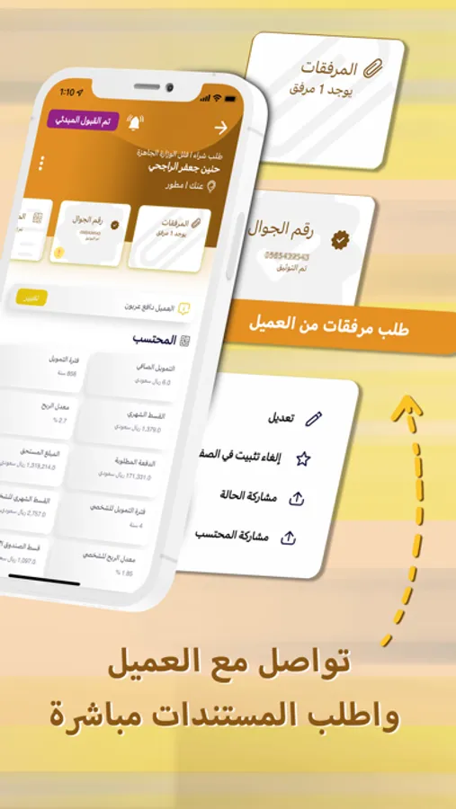 - إدارة مرفقات طلب التمويل ومتابعة النواقص مع العميل.