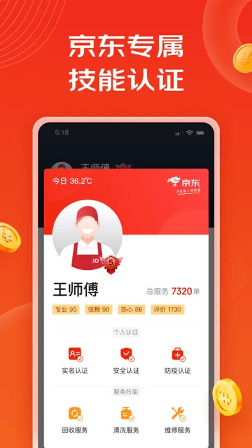 本APP适用于承接京东服务业务的师傅,服务师傅可以在此进行入驻,入驻后可完成接单、履约等工作。