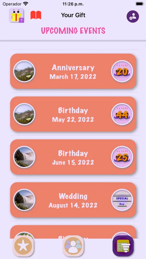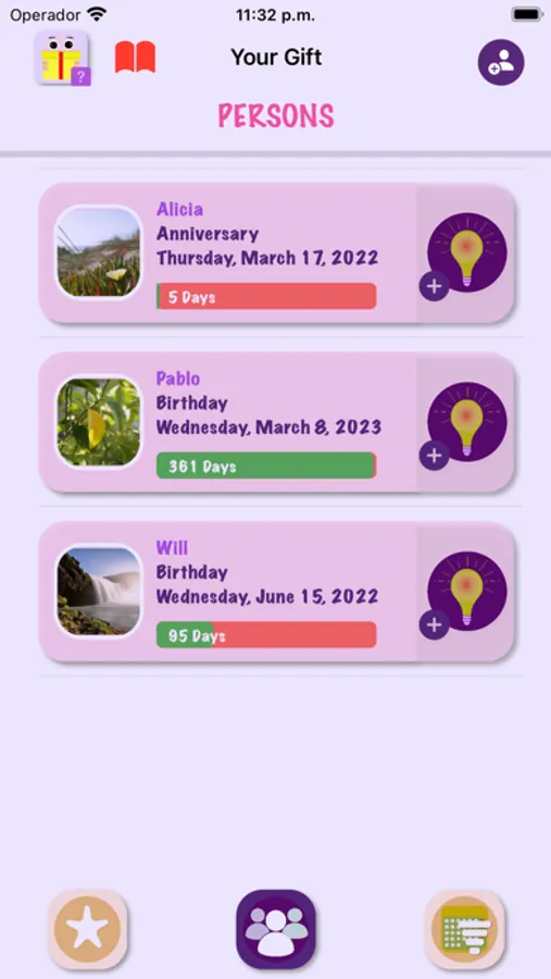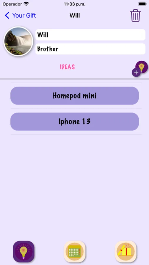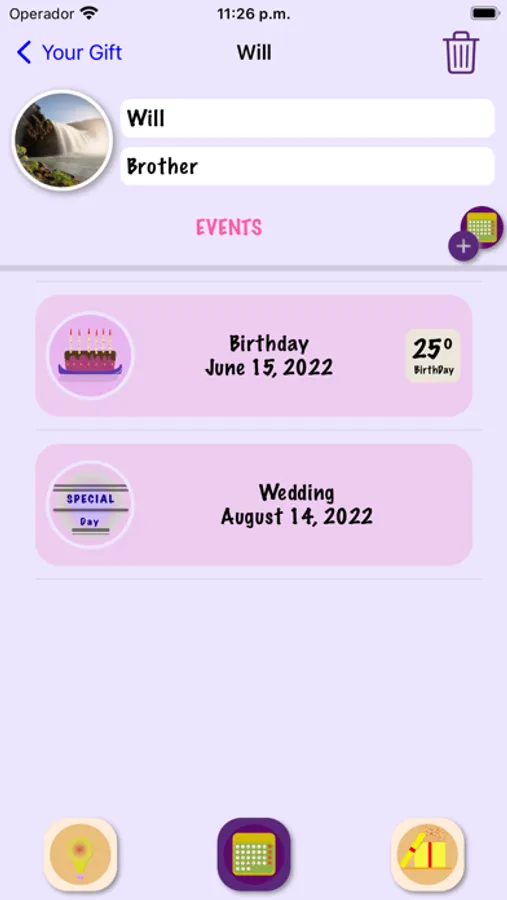 In Your Gift you can add as many people as you want. Record as many events as you need (birthdays, weddings, anniversaries...). Save all the ideas of possible gifts for that person, as well as the gifts you have given him or the idea that has materialized in a gift.