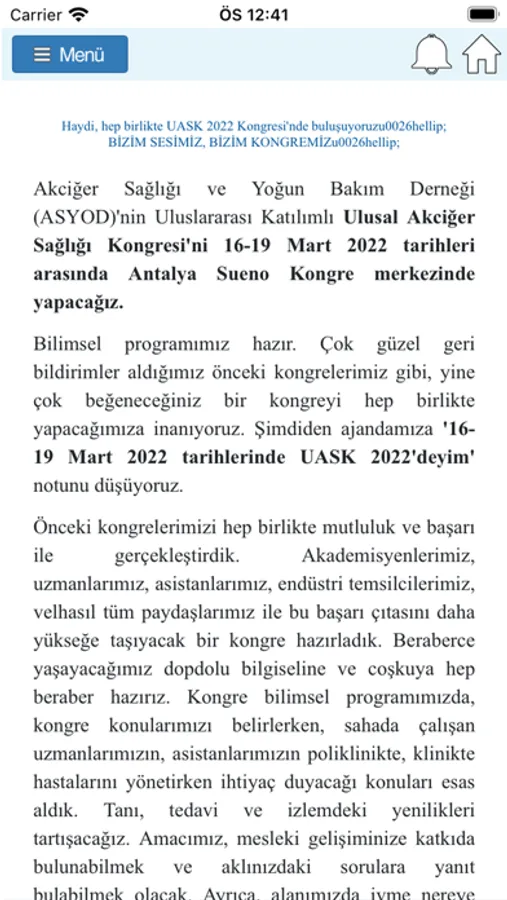 UASK 2022 Kongresi'nin resmi aplikasyonudur. Bu aplikasyon ile kongre içeriklerine ulaşabilir, anlık güncelleme alabilir, kongre esnasında güncel bilgileri öğrenebilirsiniz.