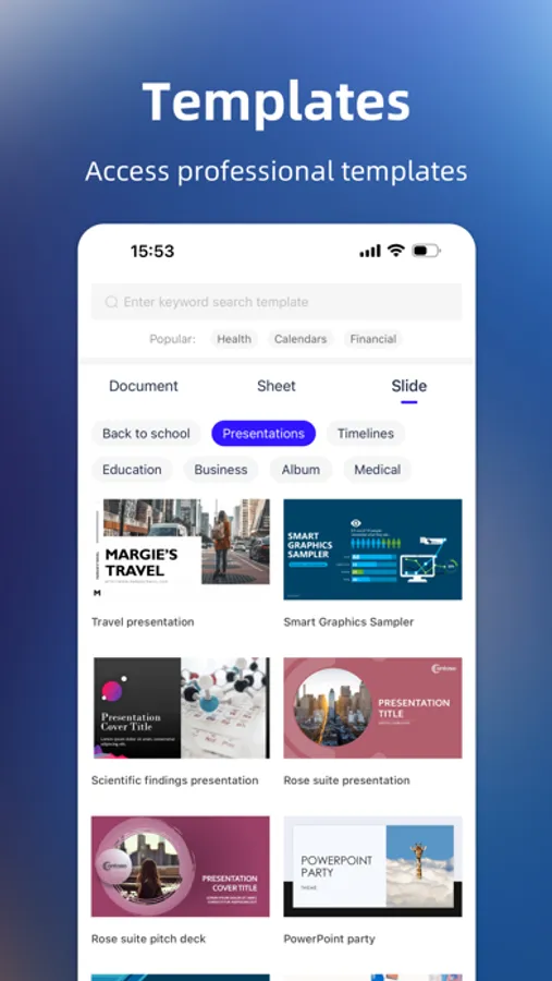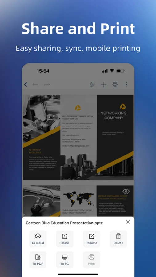 •quickly edit word , make spreadsheets, or use professional PPT templates to make PPT slides on your phone