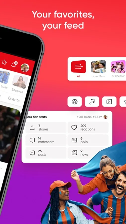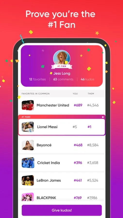 Get competitive with other fans. Engage and stay active to be crowned your favorite's top fan and reach superfan status.