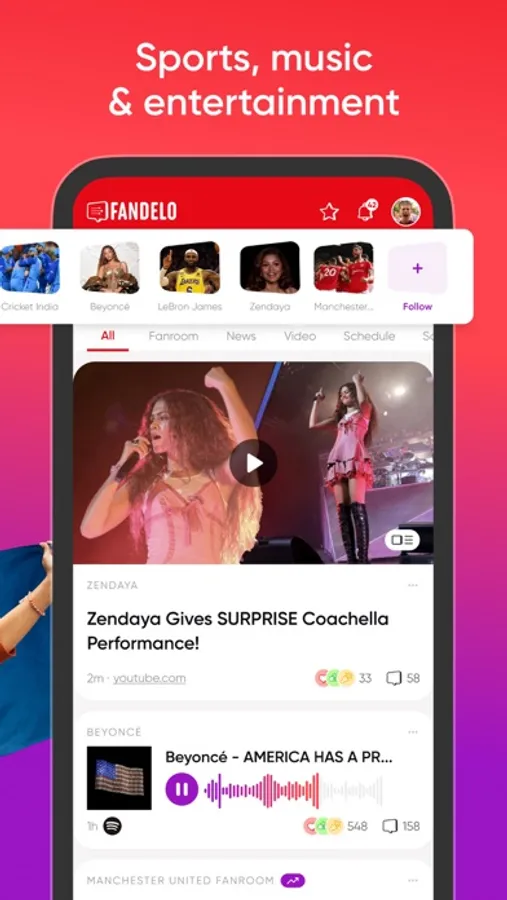 Follow only your favorite athletes, musicians, teams, leagues and celebs. Up your fan game and never miss a beat.