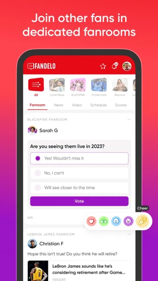 Create polls, post articles, comment on the latest news and engage with like-minded fans. Are you a big fan? Go on, show it.